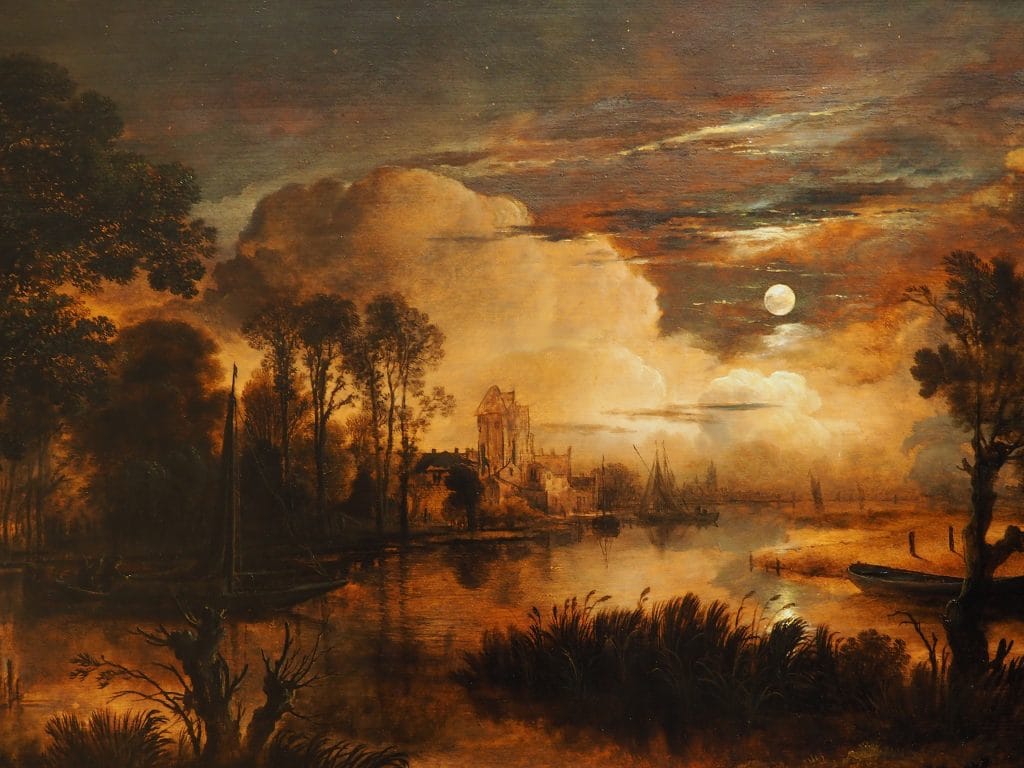 Moonlit Landscape with a View of the New Amstel River and Castle Kostverloren, Aert van der Neer