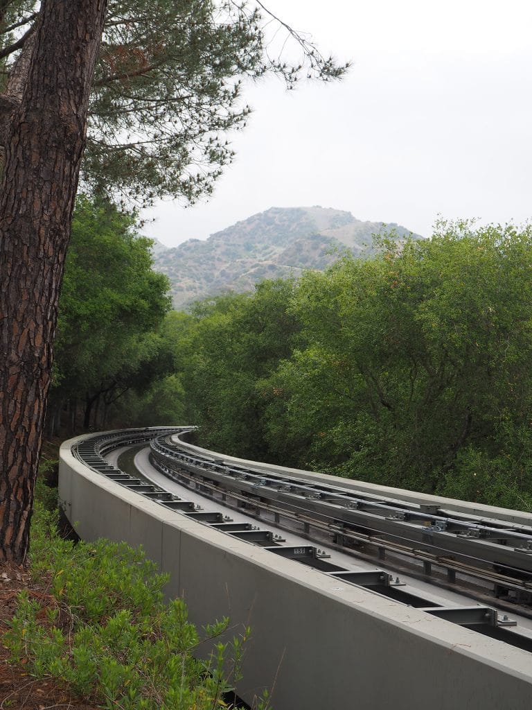 Tracks for the trolley that runs between the parking (at the base of the mountain) and the museum (at the top)